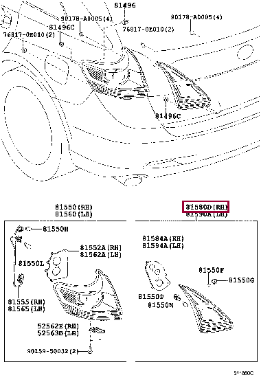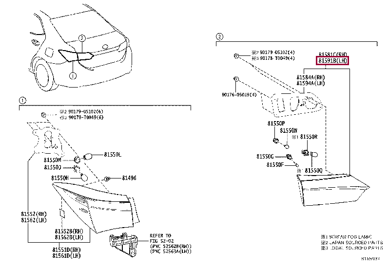 Оригинальные левые фонари на крышке багажника