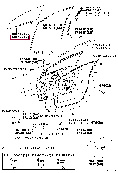 Стекло передней левой двери для AURIS