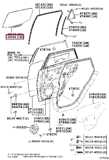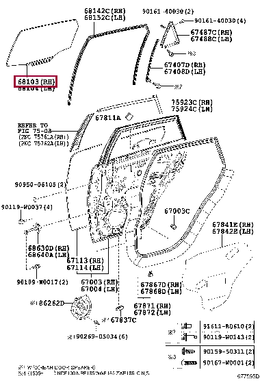 Стекло задней правой двери для AURIS