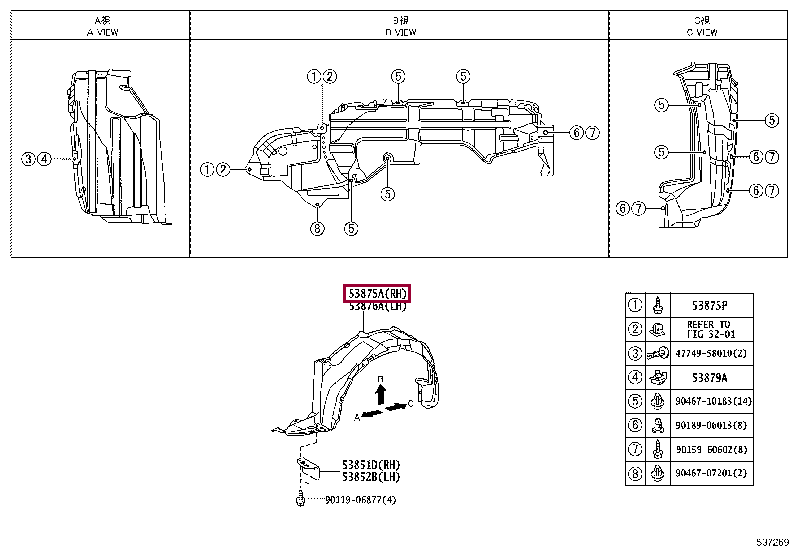 Подкрылок передний правый для COROLLA