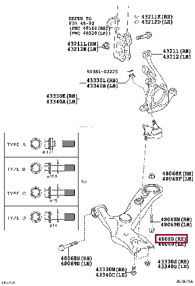 Рычаг передний нижний правый для AURIS, COROLLA