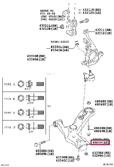 Рычаг передний нижний левый для AURIS, COROLLA